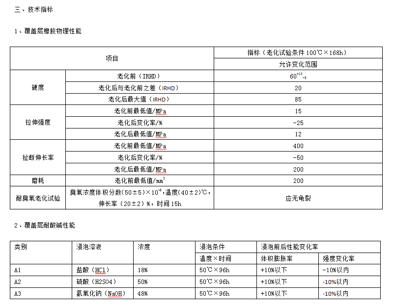 適用于和酸性或堿性物料接觸的工作環(huán)境,如磷肥制造、海水曬鹽,選用化學惰性材料制成覆蓋層,骨架材料采用聚酯帆布,具有良好的抗化學腐蝕性能和良好的物理性能。