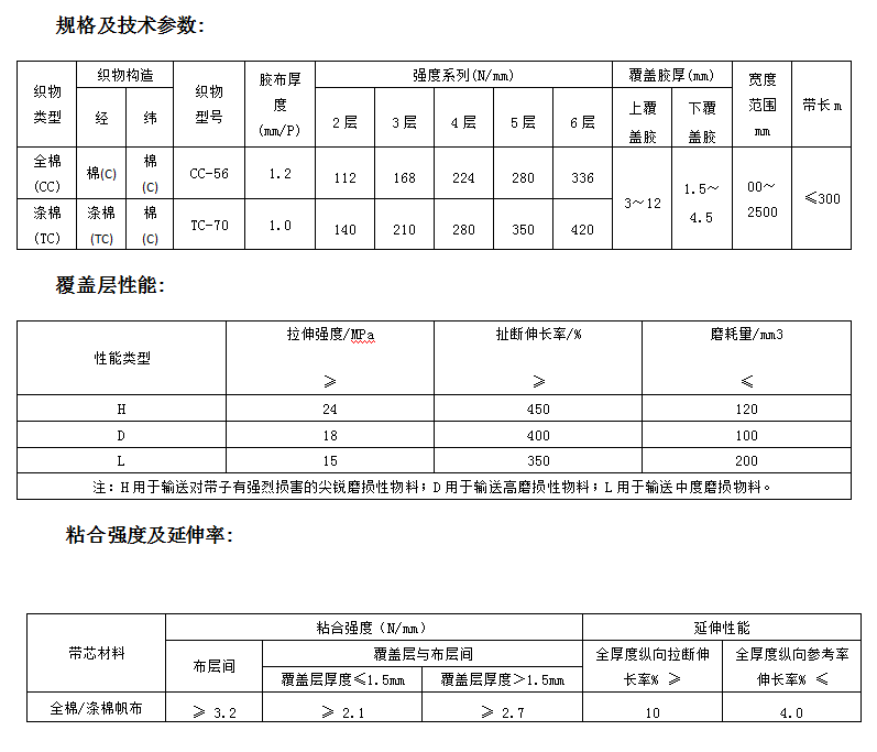 普通棉帆布輸送帶具有延伸率較低,機(jī)械卡接緊固性好,帆布與橡膠粘合強(qiáng)度高,高溫條件下變形小,抗沖擊性能優(yōu)異,適用于中短距離、中等載量條件下輸送物料。